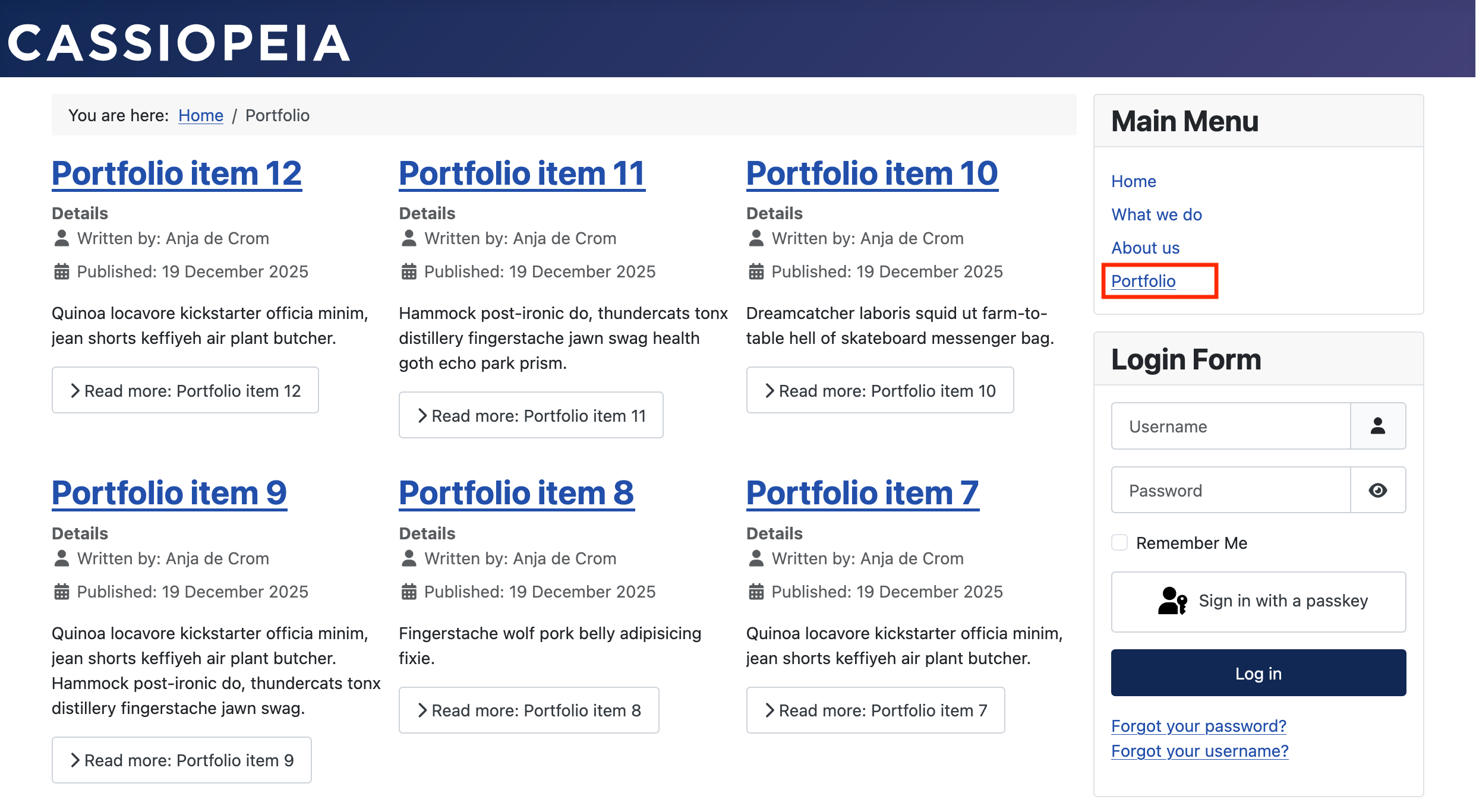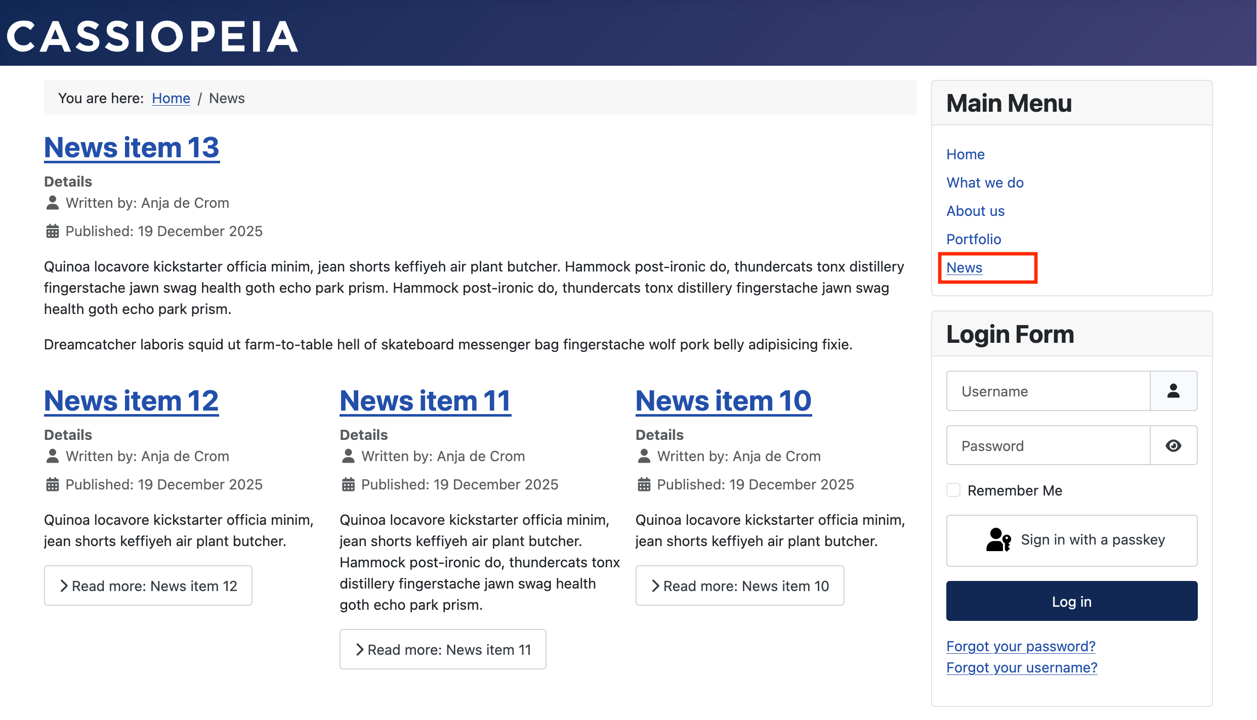 Repeat these steps for the categories Portfolio and News.